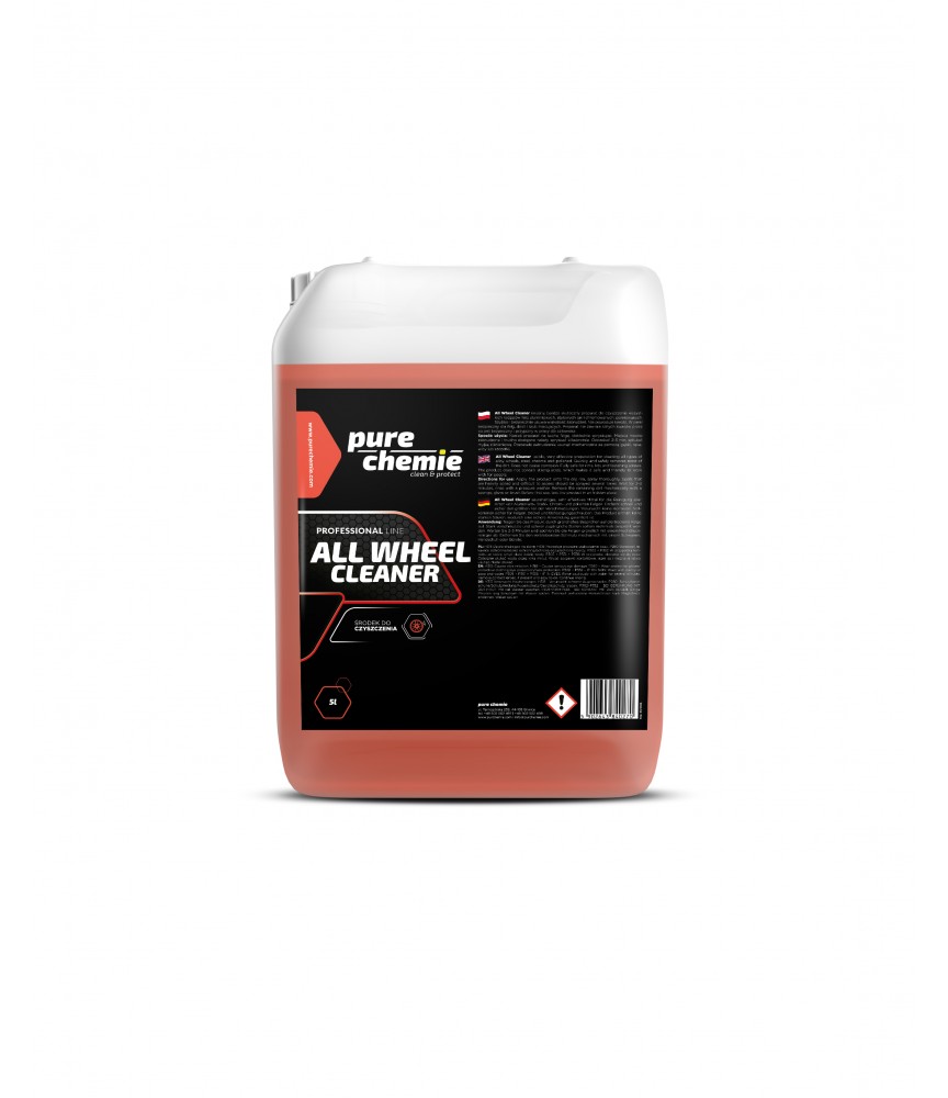 All Wheel Cleaner to niezwykle skuteczny preparat przeznaczony do czyszczenia wszystkich rodzajów felg, w tym aluminiowych, stalowych, chromowanych oraz polerowanych. Dzięki zaawansowanej formule, środek szybko i bezpiecznie usuwa większość zabrudzeń, nie powodując korozji ani uszkodzeń. Jest w pełni bezpieczny dla felg, dekli i śrub mocujących. Pomimo posiadania kwaśnego pH, nie zawiera silnych kwasów, co czyni go przyjaznym i bezpiecznym w użyciu.